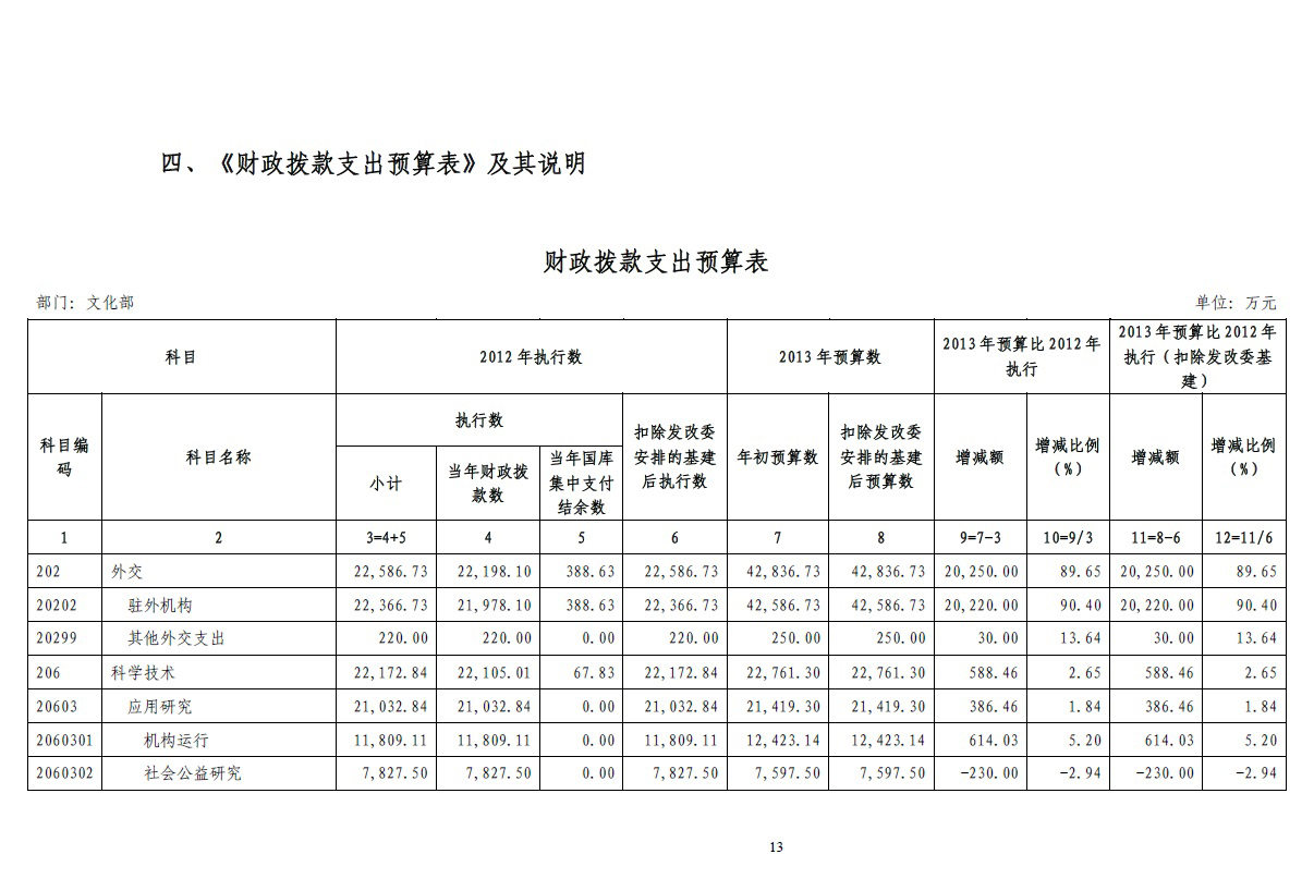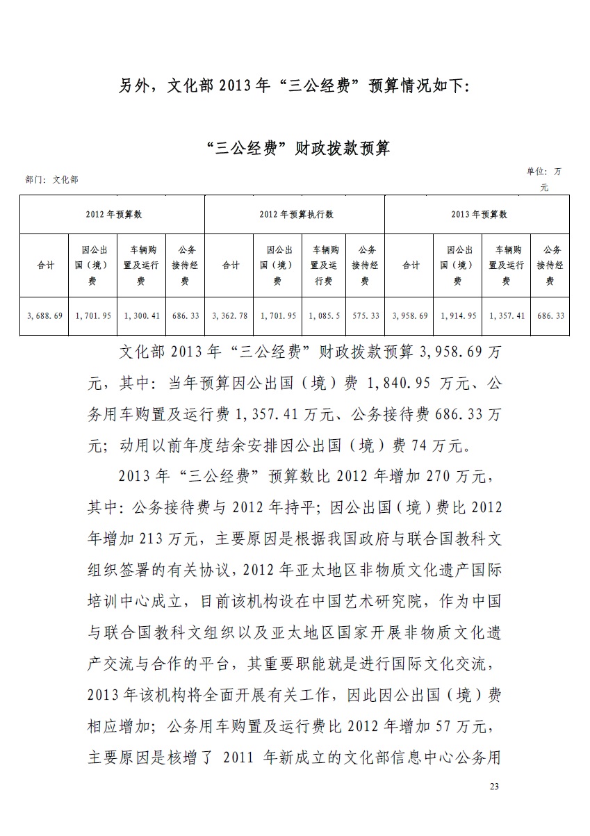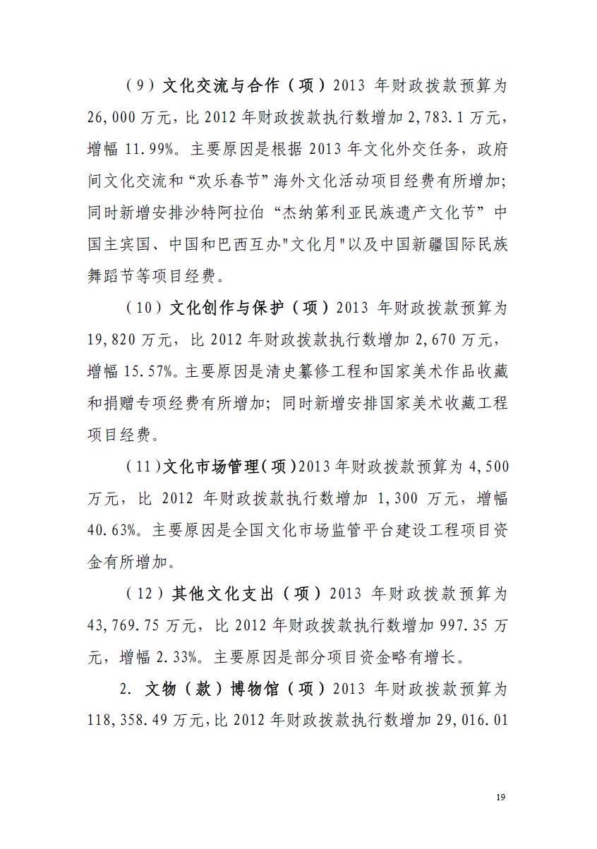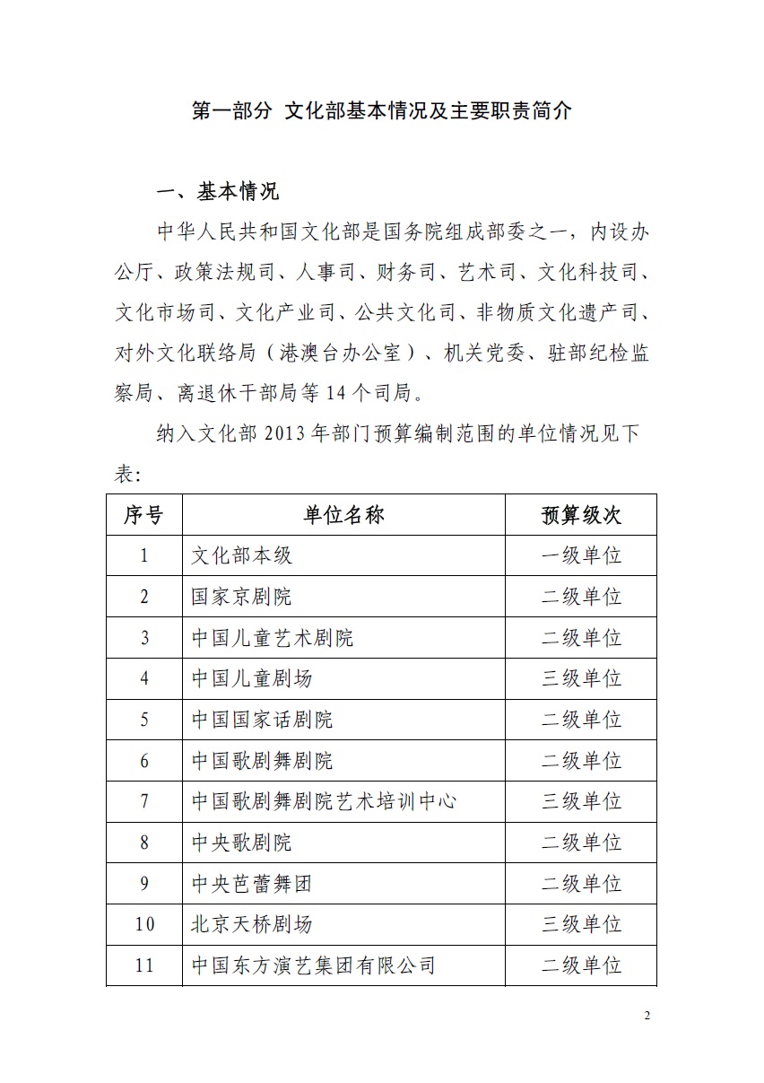 文化部2013年度部门预算