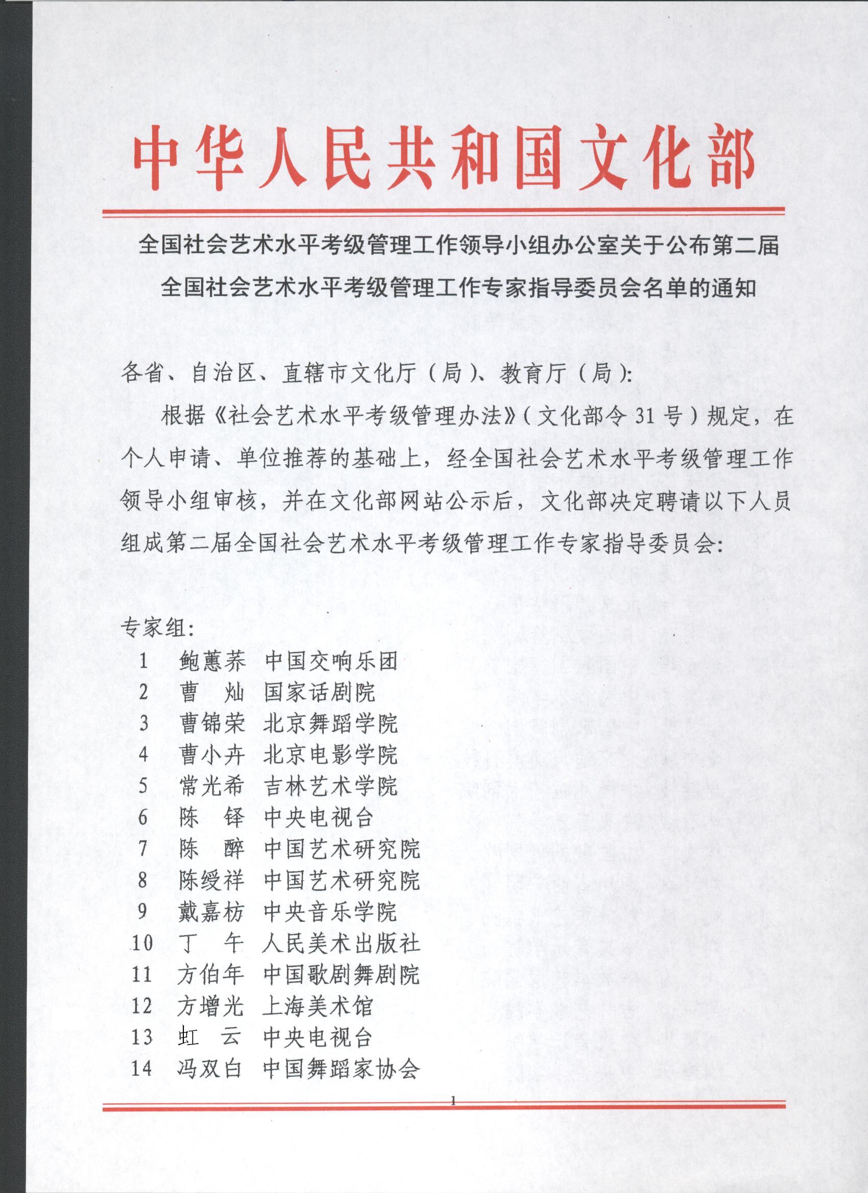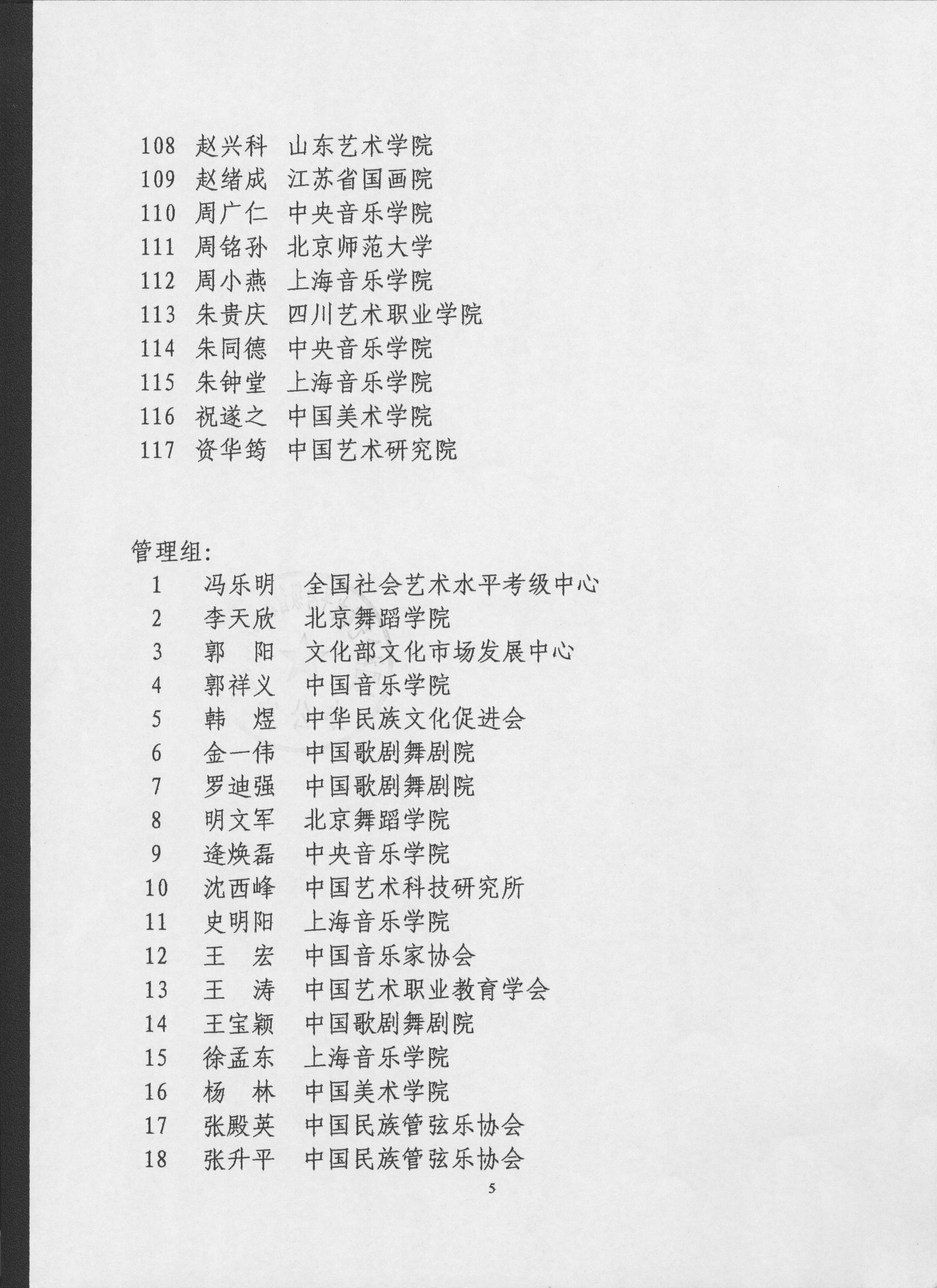 第二届全国社会艺术水平考级管理工作专家指导委员会名单