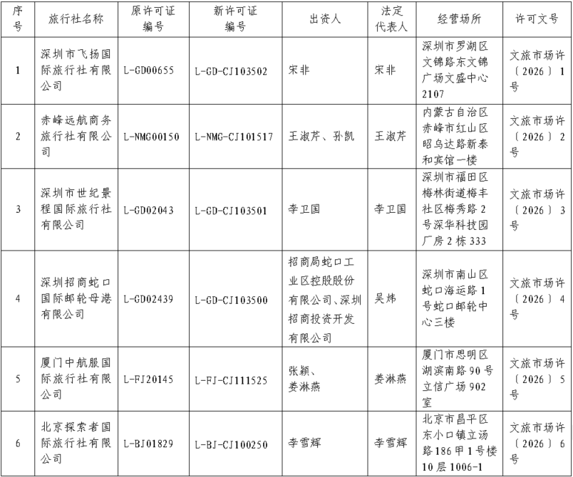 - 文化和旅游部关于许可旅行社经营出境旅游业务的公告(2026年第一批)