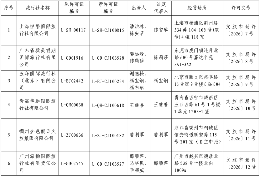 - 文化和旅游部关于许可旅行社经营出境旅游业务的公告(2026年第二批)